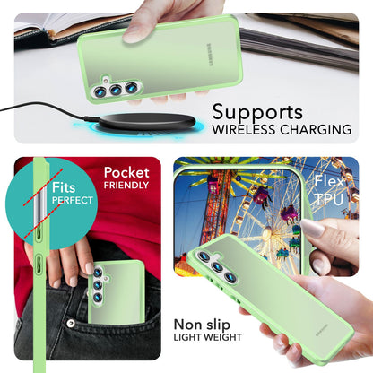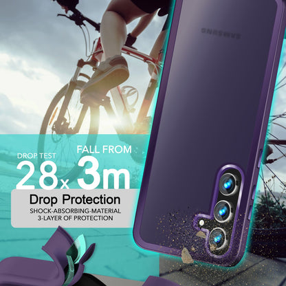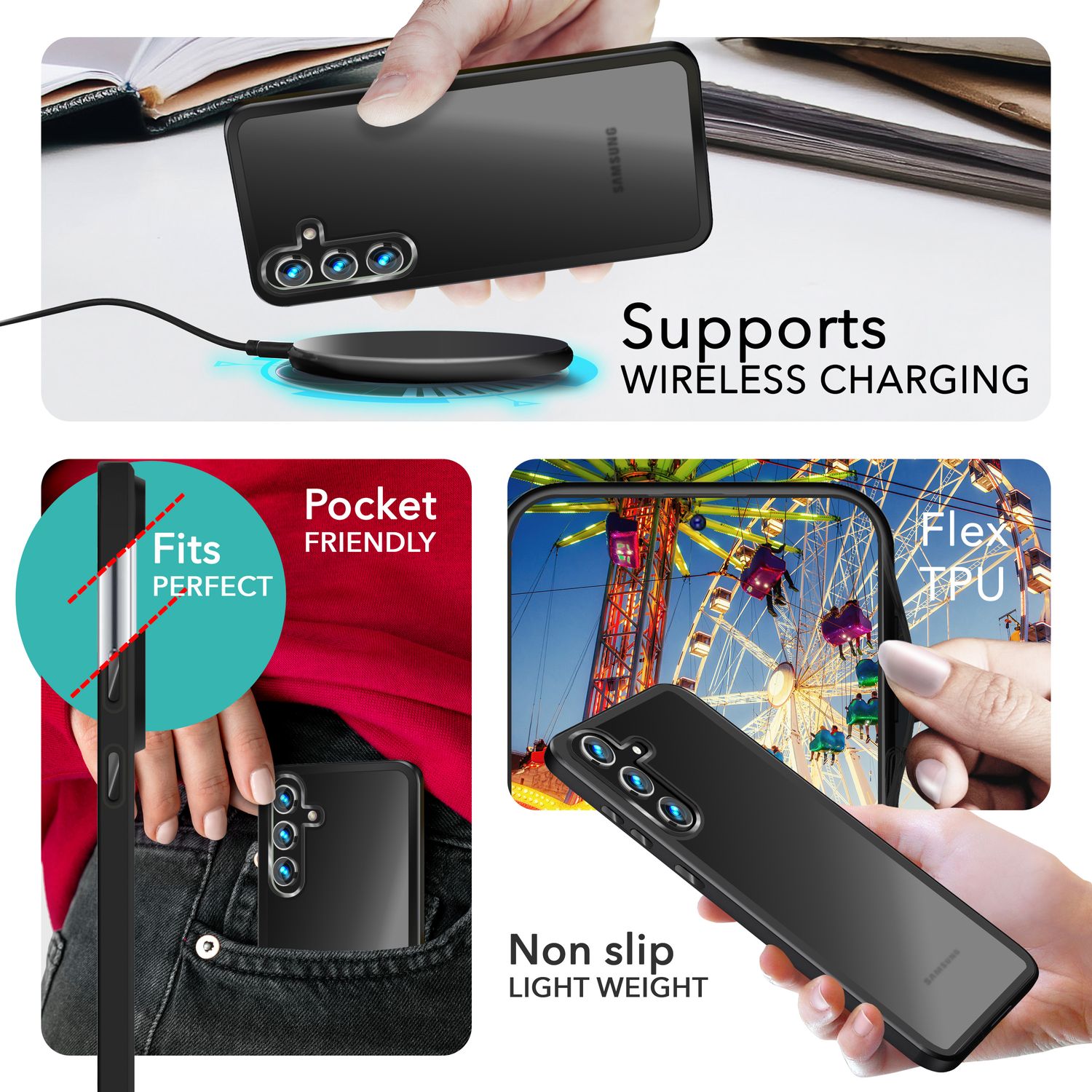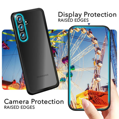 Die harte Rückseite aus Polycarbonat schützt vor Kratzern, Schmutz und Fingerabdrücken, während der flexible, verstärkte TPU-Rahmen mit stoßdämpfenden Ecken Stürze effektiv abfedert. Die erhöhte Umrandung bewahrt Kamera und Display vor Kratzern beim Ablegen auf Oberflächen.