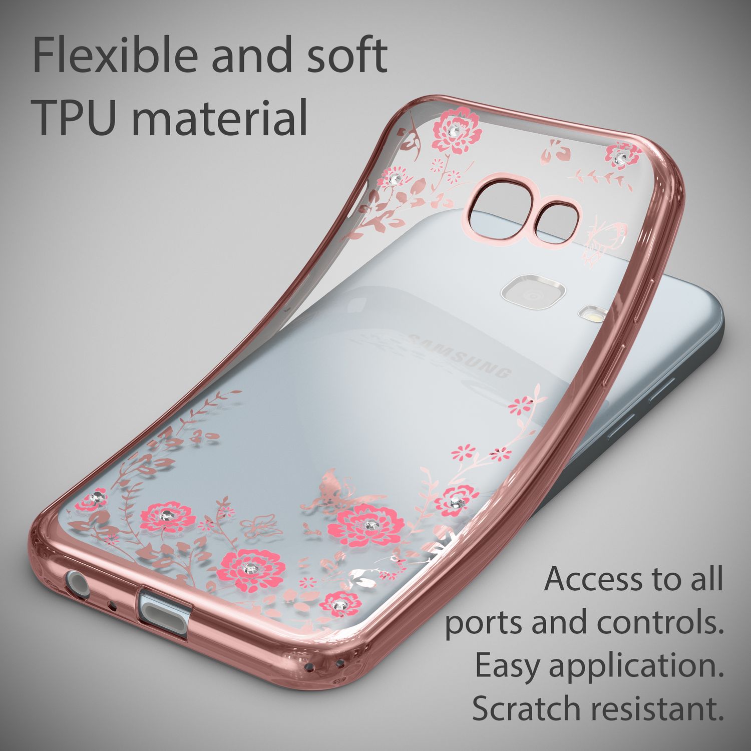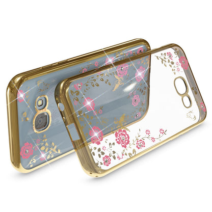 Samsung Galaxy A5 2017 Hülle Handyhülle von NALIA, Durchsichtiges Slim Silikon Case mit Blumen-Muster, Metall-Optik Dünne Schutzhülle Glitzer-Steine Bling Cover Etui, Handy-Tasche für A5 17